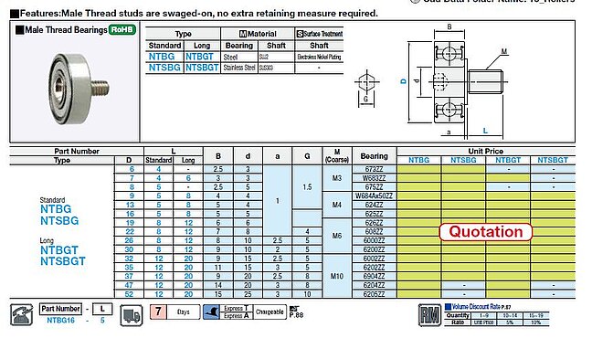 Bearing with threaded stud NTSBG13-5