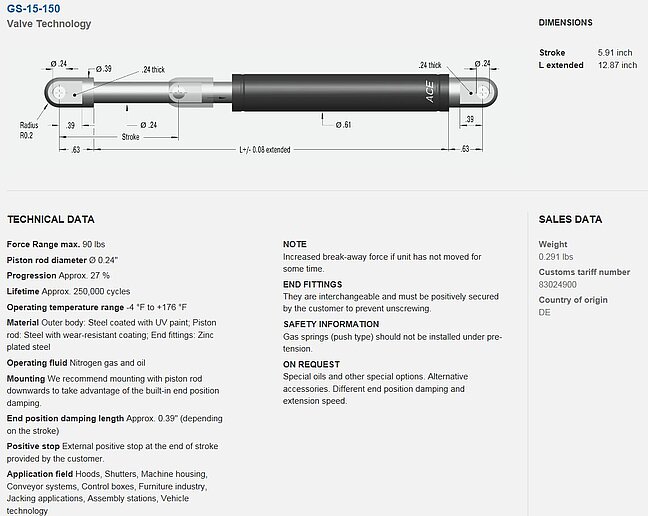 Gasspring GS-15-150-AA-325